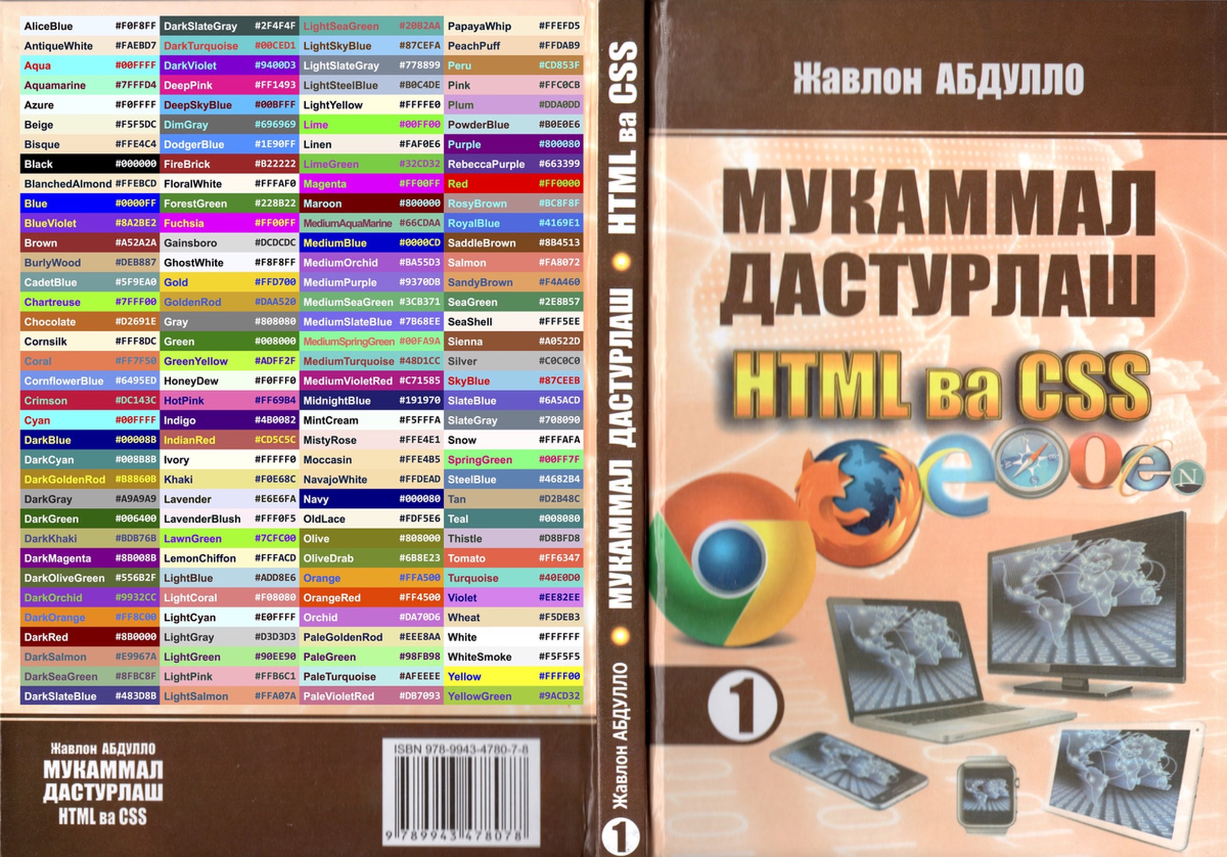 Китоб муқоваси ортида оммабоп ранглар номлари ва кодлари келтирилган.