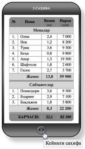 Фақат TABLE объекти ва CSS ҳусусиятлари ёрдамида ясалган мобил ҳисобот.